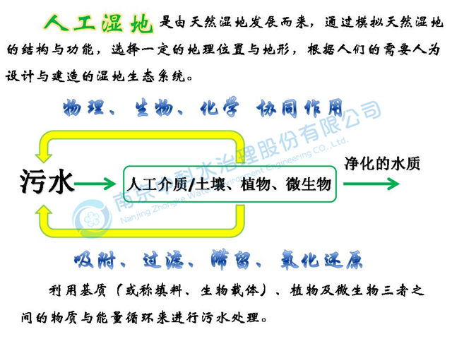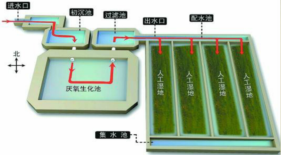 人工湿地是近几十年发展起来的一种污水生态处理工程技术,它将污水处理和环境生态有机地结合起来,在有效处理污水的同时也美化了环境,创造了生态景观,带来了环境效益和一定的经济效益。